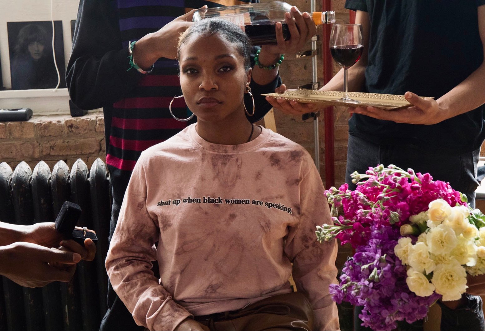 These shirts are hand-dyed & pressed by me, made with equal parts of love and annoyance. I'm tired of people talking over us! Shut up when black women are speaking!